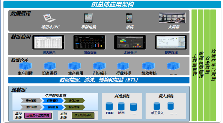 基于數(shù)據(jù)倉庫理念和思想,對公司不同應(yīng)用系統(tǒng)的數(shù)據(jù)進(jìn)行整合,實現(xiàn)新能源公司總部及各分、子公司的核心業(yè)務(wù)數(shù)據(jù)集中、集成與優(yōu)化整合,統(tǒng)一指標(biāo)口徑,建立新能源電力公司的數(shù)據(jù)中心,從而消除信息孤島,實現(xiàn)所有業(yè)務(wù)數(shù)據(jù)的統(tǒng)一管理。