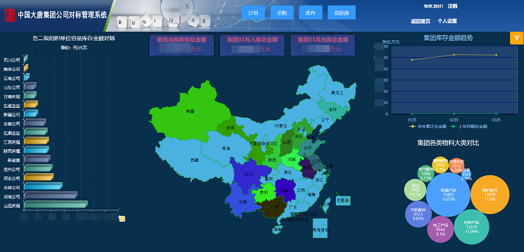 對標(biāo)管理系統(tǒng)財務(wù)部分主要進行數(shù)據(jù)分析,為中國大唐集團公司以及板塊企業(yè)進行多維度分析決策和運營決策提供及時有效的信息。對標(biāo)管理系統(tǒng)物資部分主要實現(xiàn)電子倉庫,實現(xiàn)物料全集團共享查詢、支持備品備件協(xié)作網(wǎng)管理、聯(lián)儲代儲管理;整合各基層企業(yè)采購數(shù)據(jù)并且集成大唐電子商城平臺相關(guān)采購數(shù)據(jù),進行數(shù)據(jù)分析為采購決策提供支持。