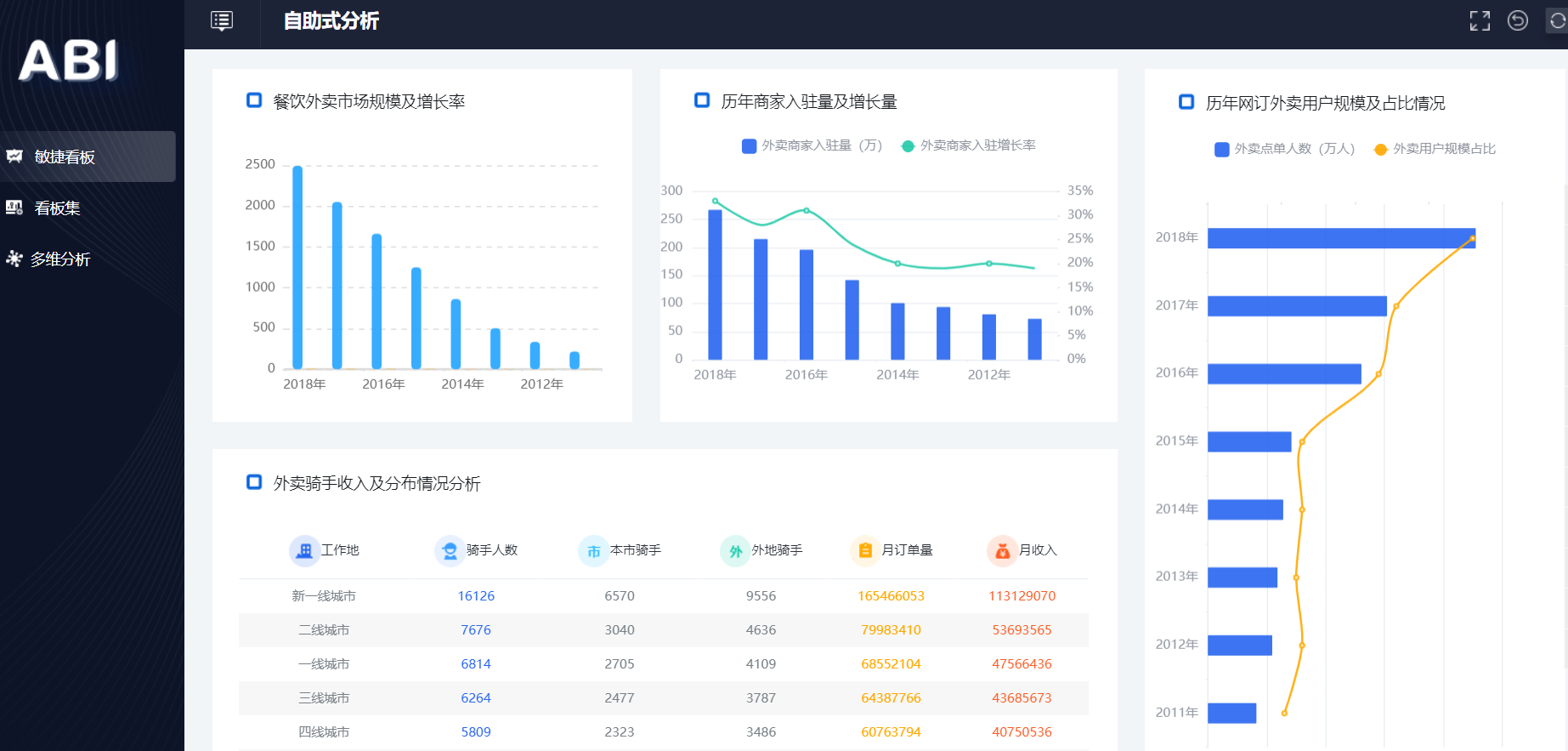 在互聯網、大數據等信息技術迅猛發展的當下,我們迎來了大數據時代。與此同時,數字經濟的快速發展不斷催生新產業新業態新模式,正成為經濟社會發展的新動能。數據已經成為繼土地、勞動力、資本、技術之后的第五大生產要素,大數據這個詞在互聯網時代也變得越來越熱門。 2016年中國網約車大戰滴滴和優步開始爭奪中國網約車市場。這一大戰從2014年到2016年末持續了近兩年,滴滴和優步分別開啟補貼搶人,一再的降價、補貼和發券留住用戶,僅2015年兩者就虧損超過200億。最終,滴滴宣布收購Uber,至此,滴滴在網約車領域一家獨大。 為什么滴滴和優步背后的資本虧損如此之大都還要堅持這場網約車大戰?答案只有一個,就是數據。滴滴能夠為資本提供的數據是海量而且細致的,能夠產生的價值是無法估量的,所以雙方都要爭奪這個市場。 那么大數據到底是什么呢?大數據有什么用,大數據有什么價值?接下來小億和大家一起來看看。 一、什么是大數據? 大數據和數據之間就差一個“大”字,那么大數據就是大量的數據嗎?其實并不是。 目前關于大數據的概念眾說紛紜,到目前為止,還沒有一個明確的統一的定義,不同組織機構對大數據有著不同的描述。麥肯錫認為,大數據是指大小超出了典型數據庫軟件的采集存儲管理和分析等能力的數據集。而維基百科給出的定義是,無法在一定時間內使用常規的軟件工具,對其內容進行抓取管理和處理的大量而復雜的數據集合。 但不論哪一種描述,關于大數據的特征卻是一致公認的。在早期就提出了一個縮寫詞來描述大數據特征,即“VVVV”。首先第一個V指的是Volume,容量。主要指非結構化數據的規模和增長速度。因為非結構化數據占數據總量的80%到90%,同時也比結構化數據增長快十倍到50倍,并且數據量是傳統數據庫的十倍到50倍。第二個V指的是為Variety,多元化。主要指大數據的易構和多樣性。數據有很多不同的形式,比如文本圖像視頻機器數據等等,這些數據大多是無模式或者是模式不明顯。第三個V值得是value,價值,主要體現在大量的不相關,信息價值密度低,需要通過深度復雜分析,才可以對未來的趨勢和模式進行預測。第四個V指的是Velocity高效。主要體現在實時分析,實時呈現分析結果。 二、大數據有什么用? 當人們談論大數據時,他們在談什么? 大數據的火熱應用滲透進了各行各業,但很少有人能夠真正認識到大數據的核心意義所在,可以說在現在的時代,數據驅動發展一點也不為過,那我們一起來看看大數據究竟有什么用? 1、大數據的處理分析將成為信息技術融合發展的新節點。 移動互聯網、物聯網、社交網絡、數字家庭、電子商務等是新一代信息技術的應用形態,這些應用不斷產生大數據。云計算為這些海量、多樣化的大數據提供存儲和運算平臺。通過對不同來源數據的管理、處理、分析與優化,將結果反饋到上述應用中,將創造出巨大的經濟和社會價值。大數據具有催生社會變革的能量。但釋放這種能量,需要嚴謹的數據治理、富有洞見的數據分析和激發管理創新的環境。 有了數據還要對數據進行分析,恰好億信華辰研發的BI工具億信ABI就能很好的做到這一點。億信ABI打通了從數據接入、到數據建模與處理、再到數據分析與挖掘整個數據應用全鏈路,可滿足企業經營中各類復雜的分析需求,幫助企業實現高效數字化轉型。 2、大數據是信息產業持續高速增長的新引擎。 面向大數據市場的新技術、新產品、新服務、新業態會不斷涌現。在硬件與集成設備領域,大數據將對芯片、存儲產業產生重要影響,還將催生一體化數據存儲處理服務器、內存計算等市場。在軟件與服務領域,大數據將引發數據快速處理分析、數據挖掘技術和軟件產品的發展。 3、大數據利用將成為提高核心競爭力的關鍵因素。 各行各業的決策正在從“業務驅動”轉變“數據驅動”。對大數據的分析可以使零售商實時掌握市場動態并迅速做出應對;可以為商家制定更加精準有效的營銷策略提供決策支持;可以幫助企業為消費者提供更加及時和個性化的服務;在醫療領域,可提高診斷準確性和藥物有效性;在公共事業領域,大數據也開始發揮促進經濟發展、維護社會穩定等方面的重要作用。 4、大數據時代科學研究的方法手段將發生重大改變。 例如,抽樣調查是社會科學的基本研究方法。在大數據時代,可通過實時監測、跟蹤研究對象在互聯網上產生的海量行為數據,進行挖掘分析,揭示出規律性的東西,提出研究結論和對策。 三、大數據的具體應用有哪些? 我們都知道,在這個時代數據不僅是國家基礎戰略性資源,也是重要生產要素。大數據被應用到的不同行業和具體項目也能讓我們窺見一些大數據的價值。 1、購物營銷 這一方面的大數據實際應用主要是指京東、淘寶等購物軟件的首頁推薦功能。我剛剛在百度搜索了“租房小冰箱”,打開京東就會發現我的首頁推薦多了小冰箱。這就是商家通過手機瀏覽的數據分析,知道我們近期的需求,之后精準的向我們進行推銷。與此同時,大數據在這一方面的應用還包括“雙十一”發貨速度的提升。在雙十一之前,物流倉儲與購物平臺合作,通過分析用戶的瀏覽數據,購物車,下定金情況,預知某一地區的購買量,進行提前備貨。當用戶付款之后,貨物是從離用戶100公里內的倉儲中心發貨,而