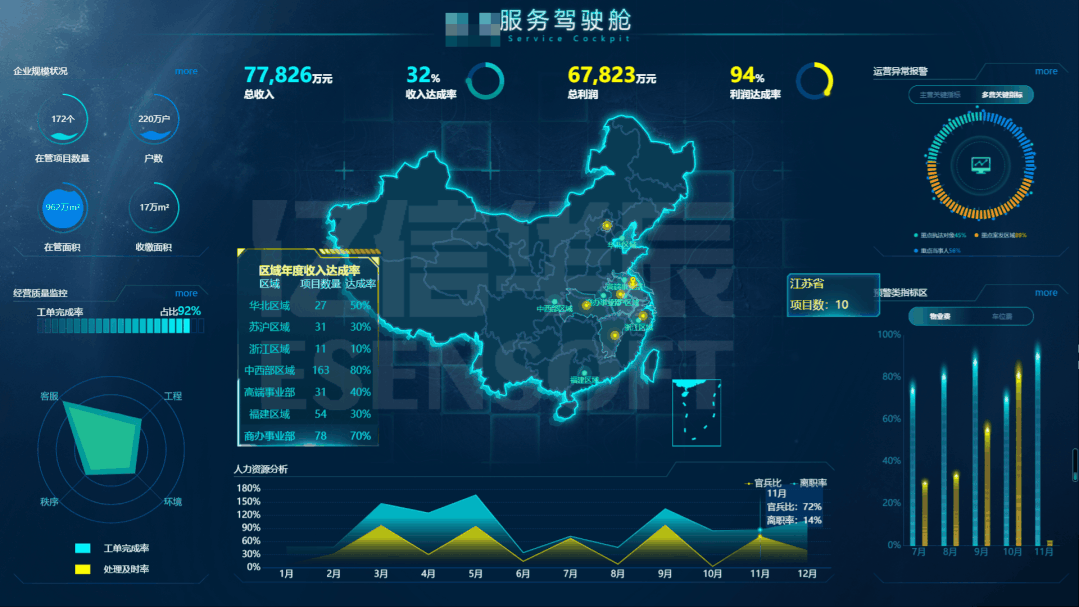 展示各省某指標的情況,通過點擊地圖上的區域從而聯動各個省的指標數據。效果如下: