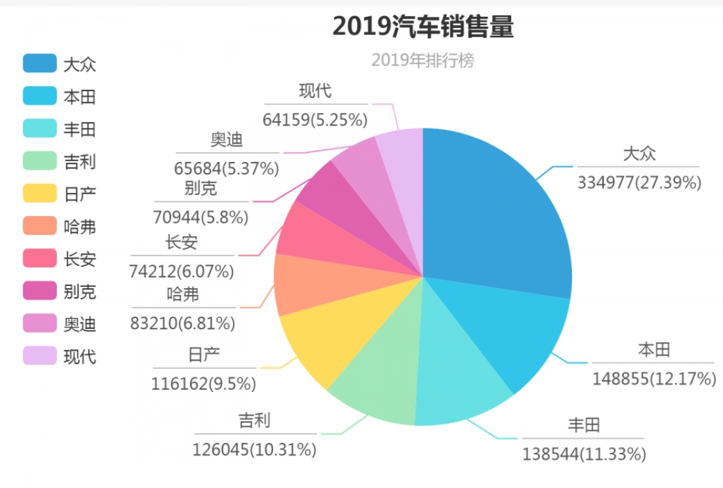 餅圖 一般通過顏色區(qū)分類別,幅度的大小對比數據,并且可以展示各類別與整體之間的占比關系。